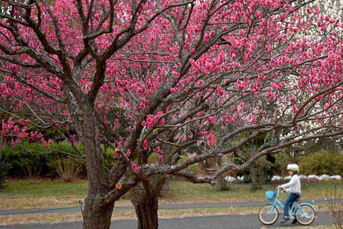 『梅』自撮りする女性 昭和記念公園-