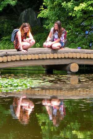 ヒメコウホネを見る二人 皇居東御苑.