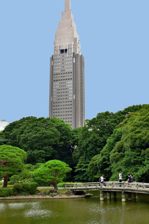 Ⅴ上の池とNTTビル 新宿御苑