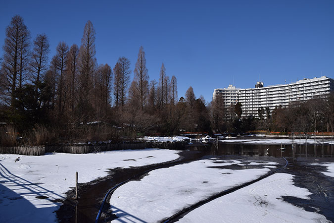 雪のかいぼり 井之頭公園