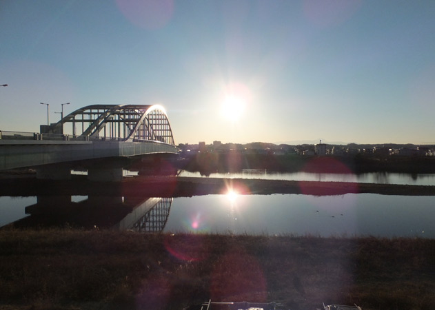 夕日 多摩川